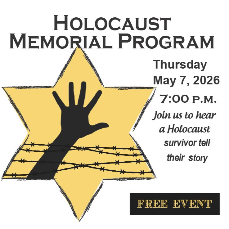 Through personal storytelling, this program honors the memory of those who were lost while preserving the voices of those who lived through one of history’s darkest chapters. Attendees will gain a deeper understanding of the Holocaust’s impact and the importance of remembrance, education, and standing against hatred in all its forms.